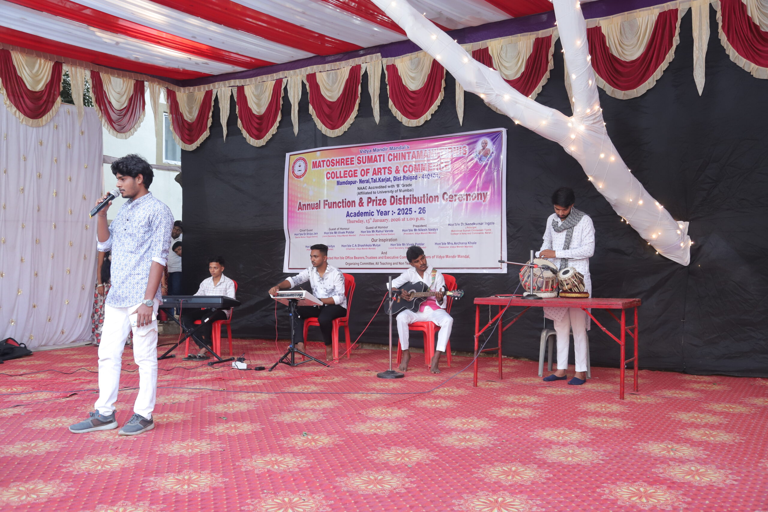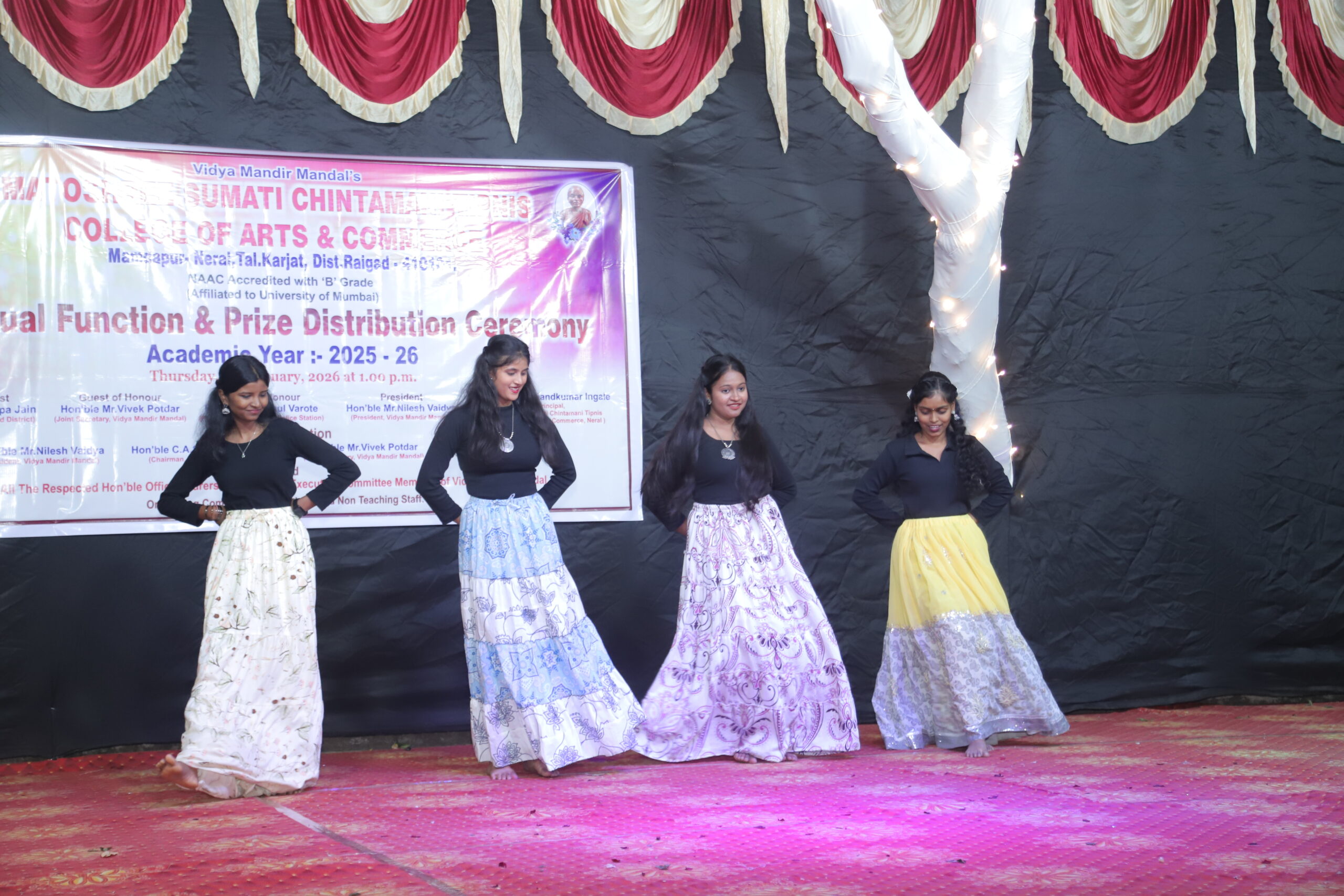 Our college organizes ‘Navhali Cultural Festival’ Every year and students actively participate in the festival. We conduct Drama, Poster Making, Elocution, Singing, Dance, Debate, Rangoli, Recipe, Mr. and Miss. MSCT, Competitions etc. under this department of cultural activities.